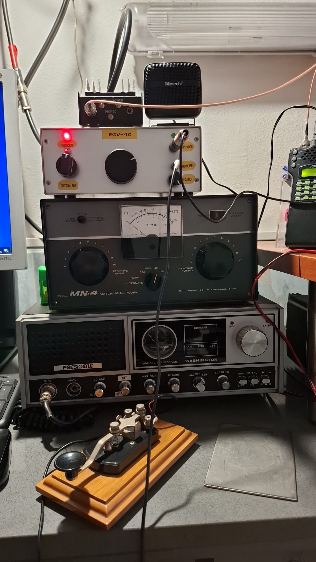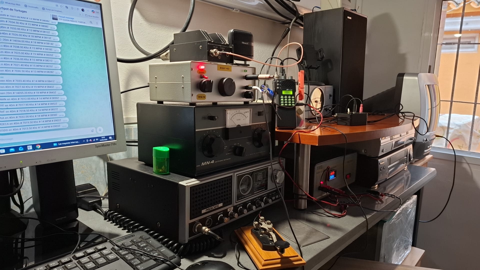 Debido a los últimos temporales de viento, tengo rota la antena de hilo con UNUN 9:1 y encogido medio metro un tubo telescópico de la vertical SE HF X-80, pero aun así, hasta que pueda subir al terrado para repararlas, procuro no perderme ningún encuentro de CW. No cabe duda que el vertical sigue siendo el “Rey” y origen de todos los demás manipuladores. Esto del VERTICAL 4 ESTACIONES se anima, de manera que en la próxima edición no me extrañaría la participación de nuevos y variopintos operadores